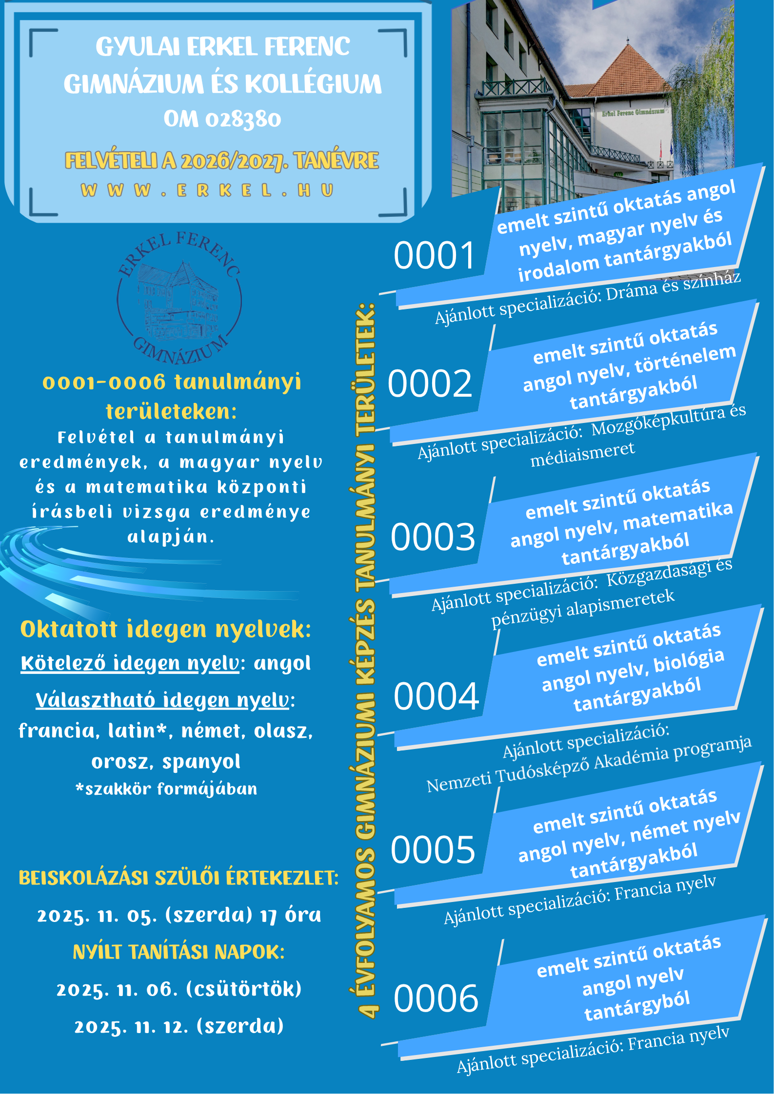 - 2025. november 6. és 12. - Nyílt tanítási órák